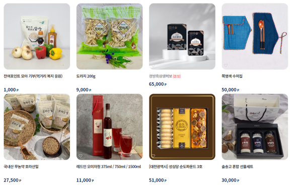 홈페이지를 통해서 기부가 완료되면 기부금액의 30%에 상당하는 포인트가 제공되고, 이 포인트를 통해서 답례품을 선택해서 받으면 됩니다.