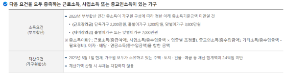 근로장려금은 소득요건 + 재산요건이 충족이 되어야 신청이 가능합니다.