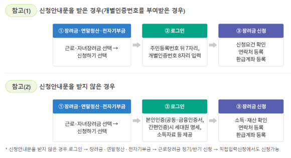 - 정기신청 : 1년 전체 연간소득에 대한 장려금신청