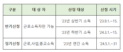 - 반기신청 : 반기(6개월) 소득에 대한 장려금신청