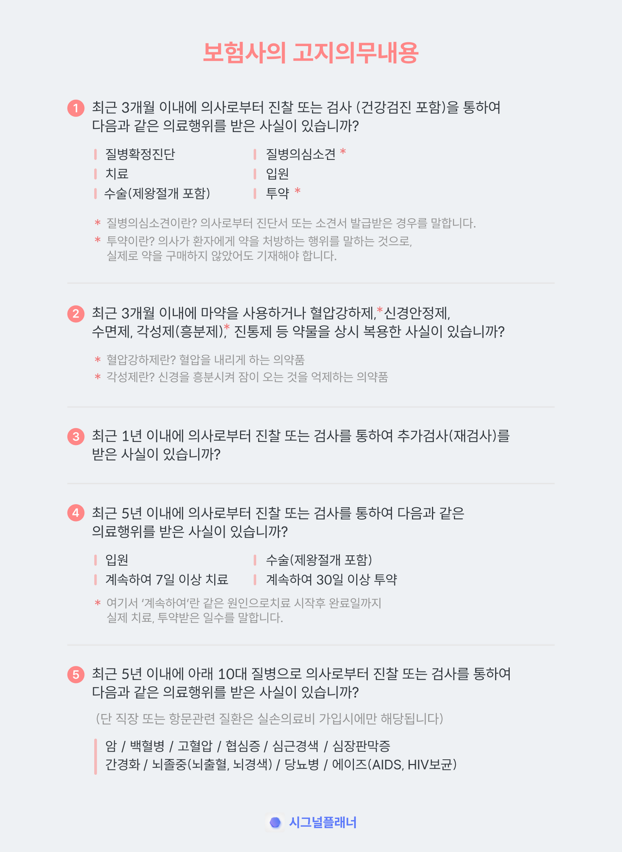 질병에 따라 고지의무 기간이 전부 다르기 때문에 꼭 한 번 더 확인해 보세요.
