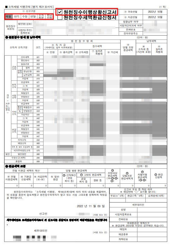 • 원천징수이행상황신고서 발급방법 (지급명세서 차이점)