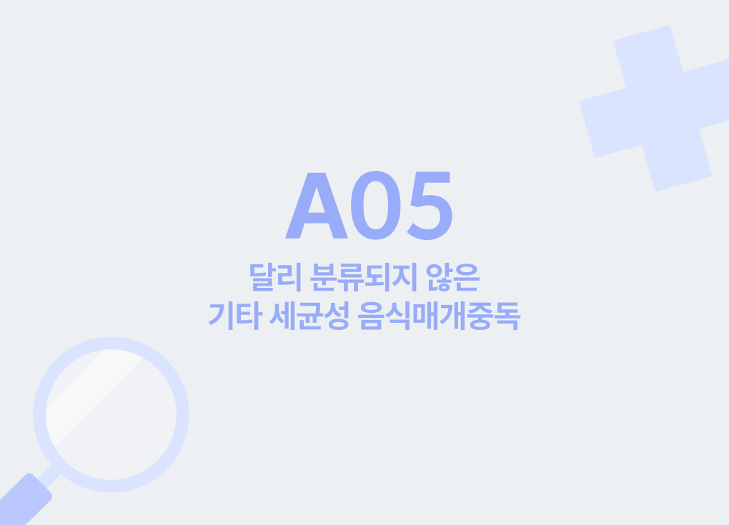 질병코드 A05 공식 질병 분류 명칭은 ‘달리 분류되지 않은 기타 세균성 음식매개중독’이에요. 흔히 식중독이라고 불러요.
