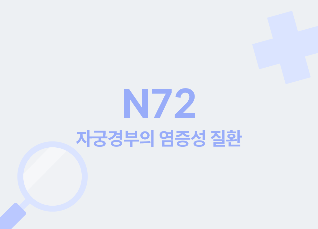 질병코드 N72 공식 질병 분류 명칭은 자궁경부의 염증성 질환입니다. 질병코드 N72는 자궁 입구에 있는 자궁 경부에 염증이 생기거나 균에 감염되는 질환을 뜻하는데요. 병명으로는 자궁경관내막염이나 자궁경부염 등이 있습니다.