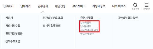 납세증명서(완납증명서)는 발급되지 않습니다.