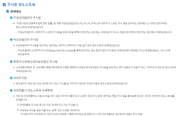반면에 국내 주식에도 양도소득세가 붙는 주식이 있습니다.