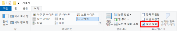 - 탐색기를 열고 상단의 "보기" 탭에서 "숨김 항목" 옵션을 체크합니다.